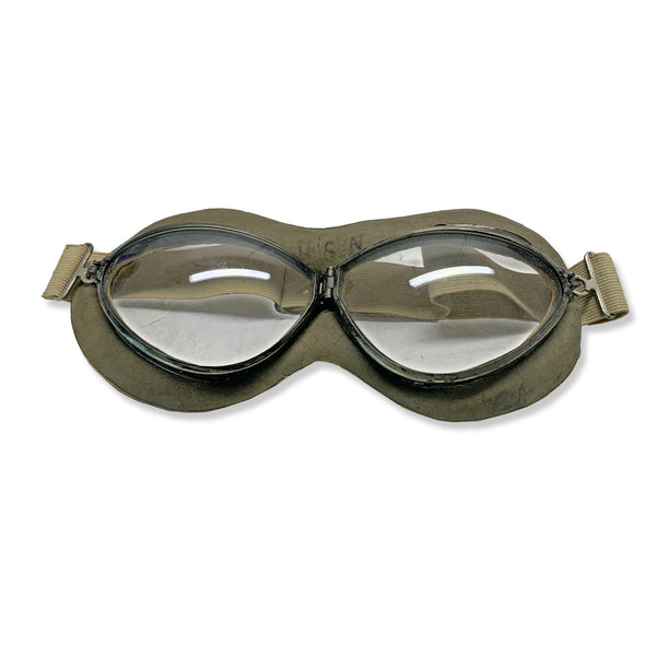 Genuine U.S. Navy MK-1 aviator goggles, 100% original and issued during WWII. These iconic goggles were standard gear for Navy pilots and aircrew, designed for clarity, protection, and durability in demanding flight conditions. The lenses are clear and the rubber is still in excellent condition and marked USN.